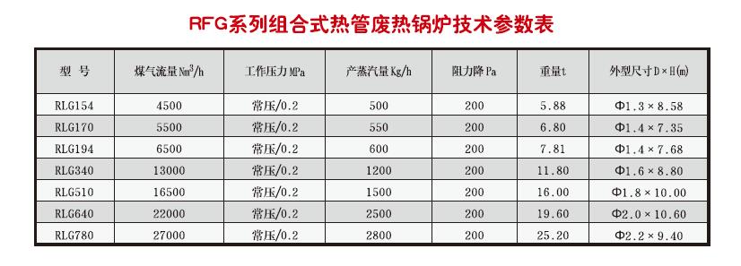 RFG型熱管廢熱鍋爐主要應用在氮肥行業造工段中,利用上、下行水煤氣顯熱回收副產壓飽和蒸汽。