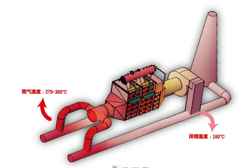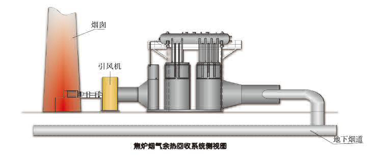 焦爐煙氣余熱回收系統在焦爐的炭化室內,用于練焦的熱源為焦爐煤氣間接然燒加熱產生的熱量} ,焦爐煤燃燒后的煙氣,從燃燒室排出時溫度約270- -300C,煙經地下煙道和煙囪后直接排空,不僅浪費能源,而且造成嚴重的污染。本項目采取的生產工藝為:在焦爐燃燒排放廢氣的煙道上開孔,將廢氣利用引風機從煙道內抽出,經過熱管鍋爐(蒸發器、省煤器)與鍋爐水換熱,煙氣由300°C被冷卻到150°C后,從風機入口排入原焦爐煙囪排空。鍋爐水被加熱后氣化,在蒸汽包內匯合,并入蒸汽管網管供生產使用此項目建成運行可以達到非常顯 暗的節能效果。
